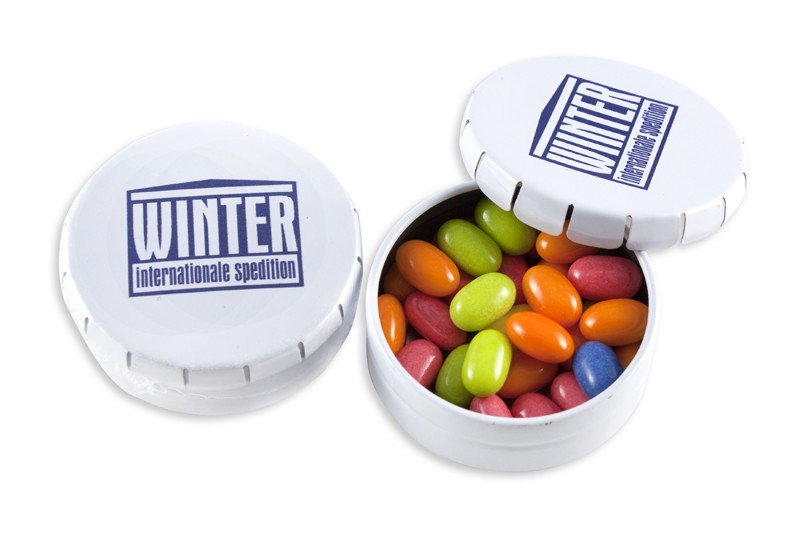 malá plechovka s 6 různými druhy obsahu s logem ne víčku plechovky