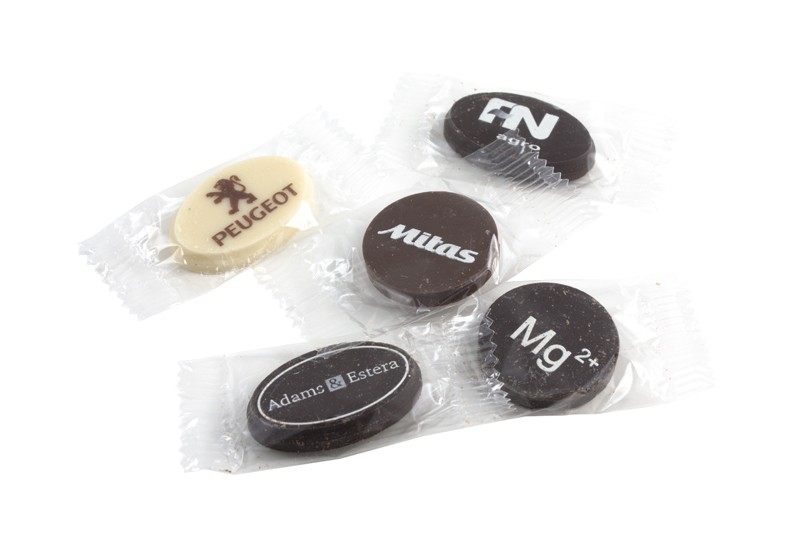 belgická čokoláda v celofánu s potiskem přímo na čokoládě
